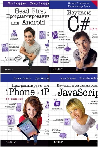 Входят переводные книги издательства O'Reilly. это уникальная серия "визуальных" книг, созданных по последним методикам эффективного обучения. Книги имеют огромное количество иллюстраций, графиков и таблиц, что позволяет усваивать материал намного эффективнее. Разговорный стиль изложения концентрирует внимание читателя, а упражнения, контрольные вопросы и задания позволяют эффективно закрепить полученные знания.